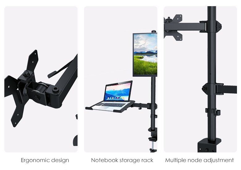 5. The characteristics of the monitor laptop arm stand: universal rotation adjustment, internal and external two-way adjustment, horizontal and vertical screen browsing.