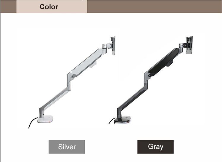 1. This single-arm gas spring monitor stand is made of aviation aluminum alloy material, with a simple appearance;