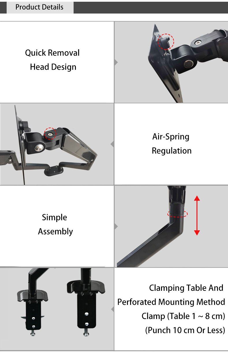 This aluminum alloy monitor arm is made of high-quality aluminum and has a simple appearance.